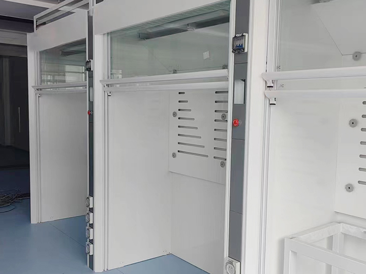 通風采用通風柜風機排風,水、電、氣和通風一體化面板控制,可配備防腐、防爆照明燈,多功能(三相、單相)插座。具備氣體管道和多個水管接口。可滿足多種試驗使用水、用電、用氣的要求。