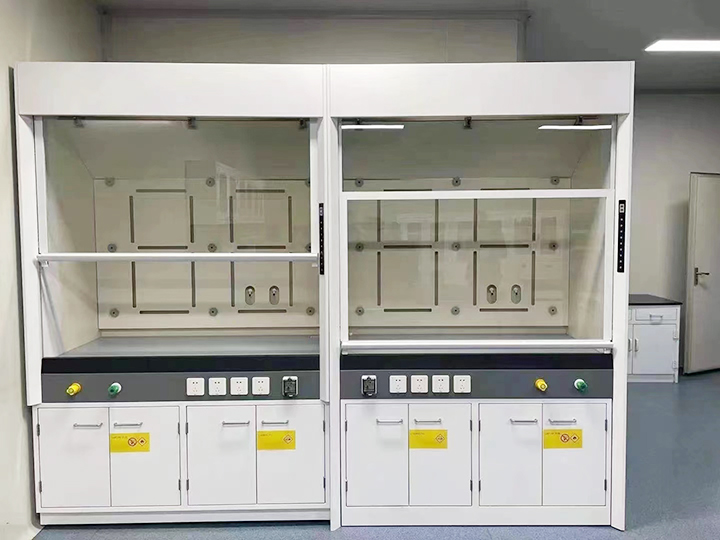 三塊導流板使處于不同高度空間的有害氣體分別從不同的段區排出。通風柜以操作表面風速0.5m/s的速度將通風柜中的空氣排出,確保無任何殘留氣體存在。通風效率高,排風量為450-1600m3/h,且噪聲小。 可為實驗者提供舒適的試驗空間。