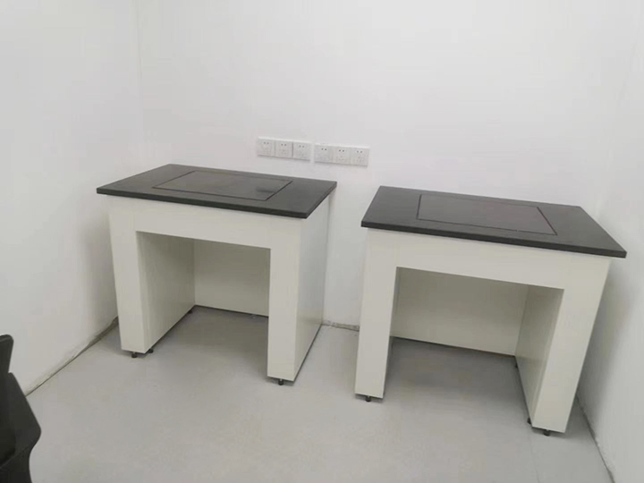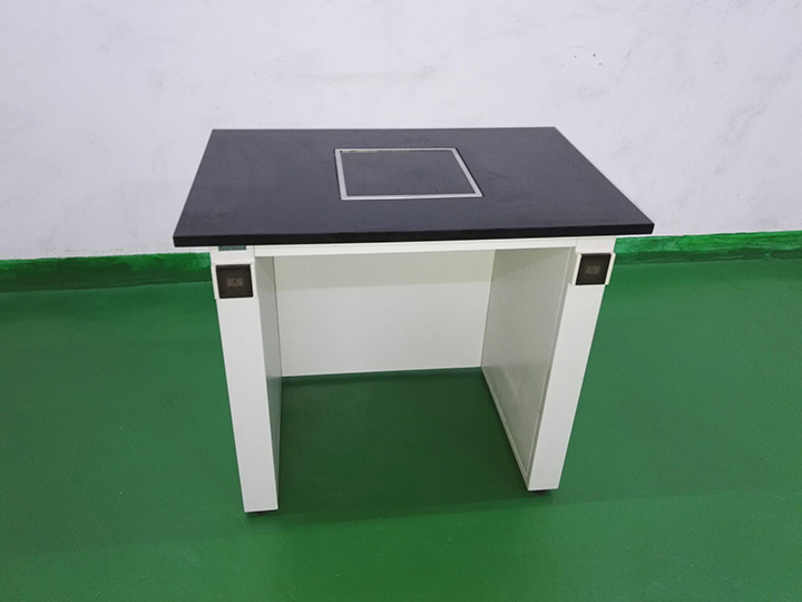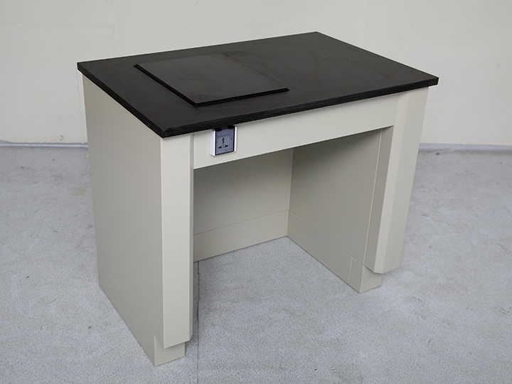 2、采用400 * 500 * 80mm黑色天然花崗巖臺面,嵌入酚醛樹脂復合臺面內,也可做整塊花崗巖臺面。 此臺面專門用于放置儀器天平。天然花崗巖石:臺面厚度≥60mm。
